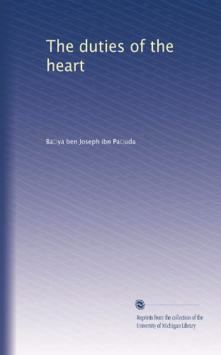 This book, "The Duties of the Heart", by Baḥya ben Joseph ibn Paḳuda, Yehudah ibn Tibon, Edwin Collins, is a replication of a book originally published before 1909. It has been restored by human beings, page by page, so that you may enjoy it in a form as close to the original as possible. This book was created using print-on-demand technology. Thank you for supporting classic literature.From reader reviews: